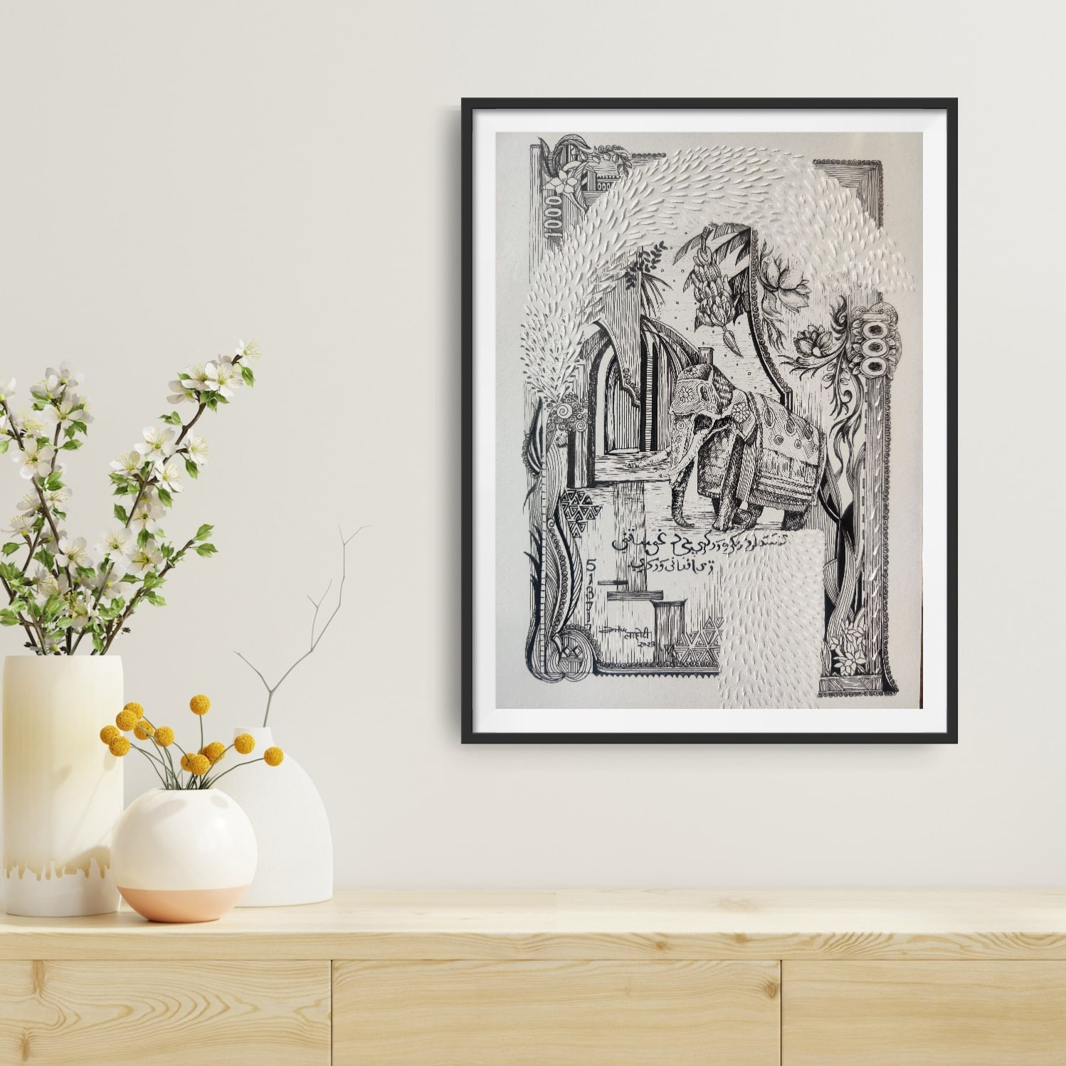 Concept: This work is inspired by different motifs on the banknotes of Sri Lanka.  Finding new homes showcasing how our nature sacrificing and moving towards their new homes because of human interference.