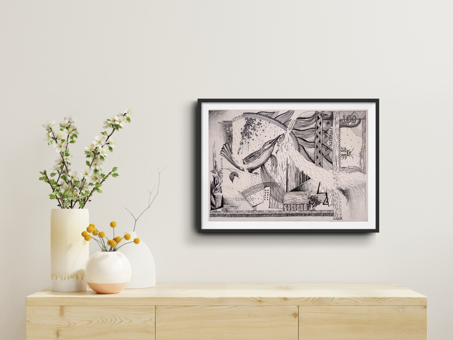 Concept: This work is inspired by different motifs on the banknotes of different countries. Finding new homes showcasing how our nature sacrificing and moving towards their new homes because of human interference.